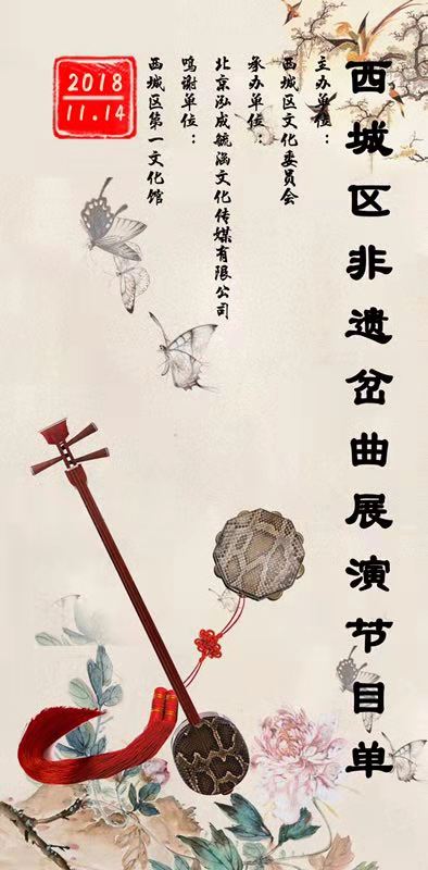 11月14日下午,西城区第一文化馆小剧场内弦鼓齐鸣曲声嘹亮,由西城区文化委员会主办的“西城区非遗岔曲展演”成功举办,由岔曲西城区级非遗代表性传承人马岐老师邀请的来自北京、天津、河北的二十余位演员和票友演唱了三十几段岔曲的经典曲目,观众陶醉其中,享受着这文化的饕餮盛宴。